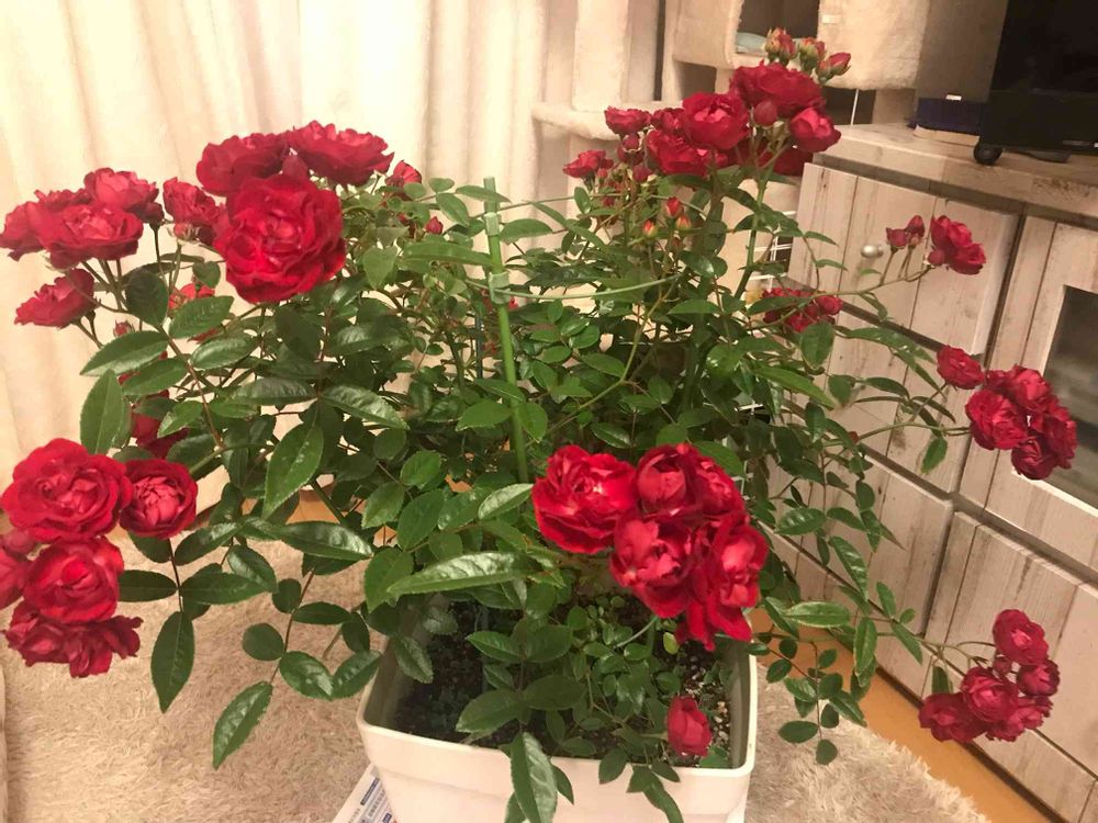 去年「薔薇とガーデニングショー」で買って帰った小さな苗木を愛情いっぱいに育てたら、いっぱいお花を咲かせてくれました。