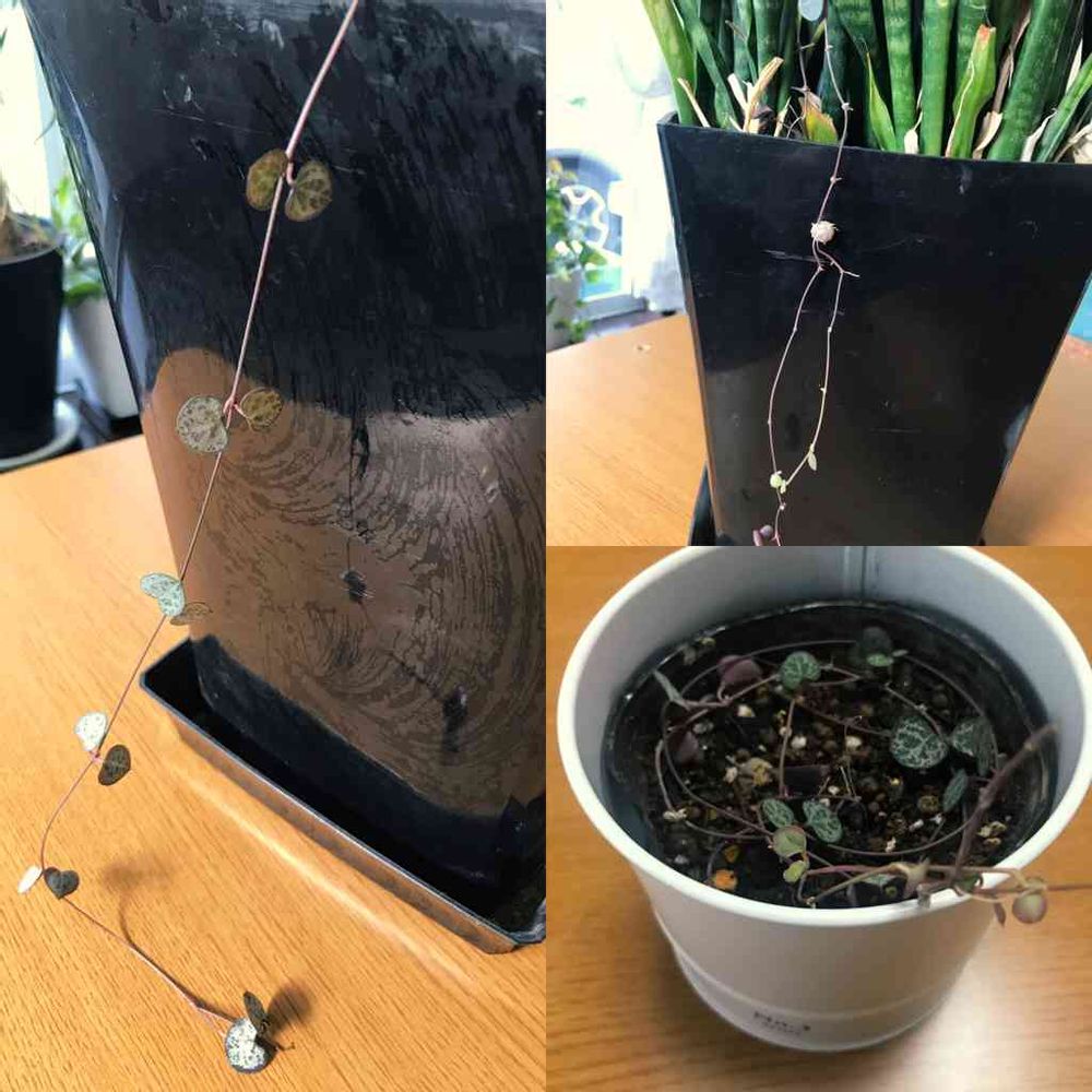 先日植え替えたサンセベリアの中に生えてたハートカズラとそのムカゴ植え替えしてみました!