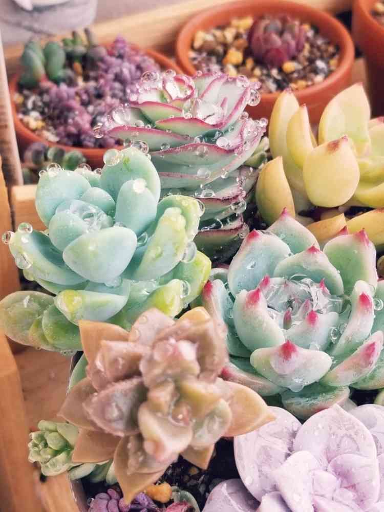 雨に濡れっぱなしはダメだけど、水滴の付いている多肉さんたちってキレイですよね🎵