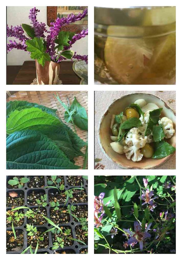 天然酵母水のプクプクがおおよそ止まったので今朝濾しました。乳酸菌飲料のいい香り😊エゴマの葉は、🍼🔑さんの投稿をヒントに、醤油漬けにしてみよう。トマトのピクルスも終わっちゃう。アメジストセージ暴れるのでカット。ホトトギスの種、形が面白いね😁種蒔き苗が植えてくれ〜って言ってる💧