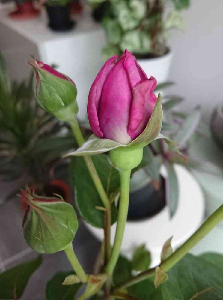 昨日まで閉じていたガクが開き始めて、花びらも少しほころび始めました。