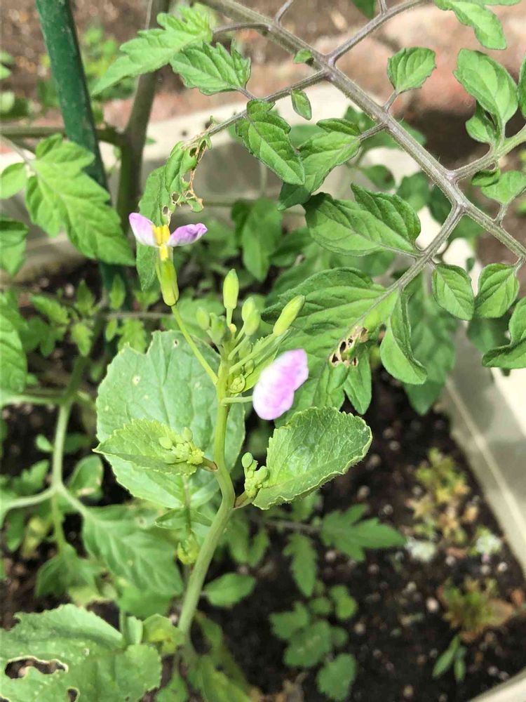 もう一つのハツカダイコンにも花が咲きましたが、白ではなくピンクの花が咲きました!予想外でした。