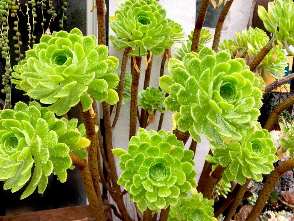 多肉小屋中央に鎮座するカナリエンスもずぶ濡れ〜( ̄◇ ̄;)