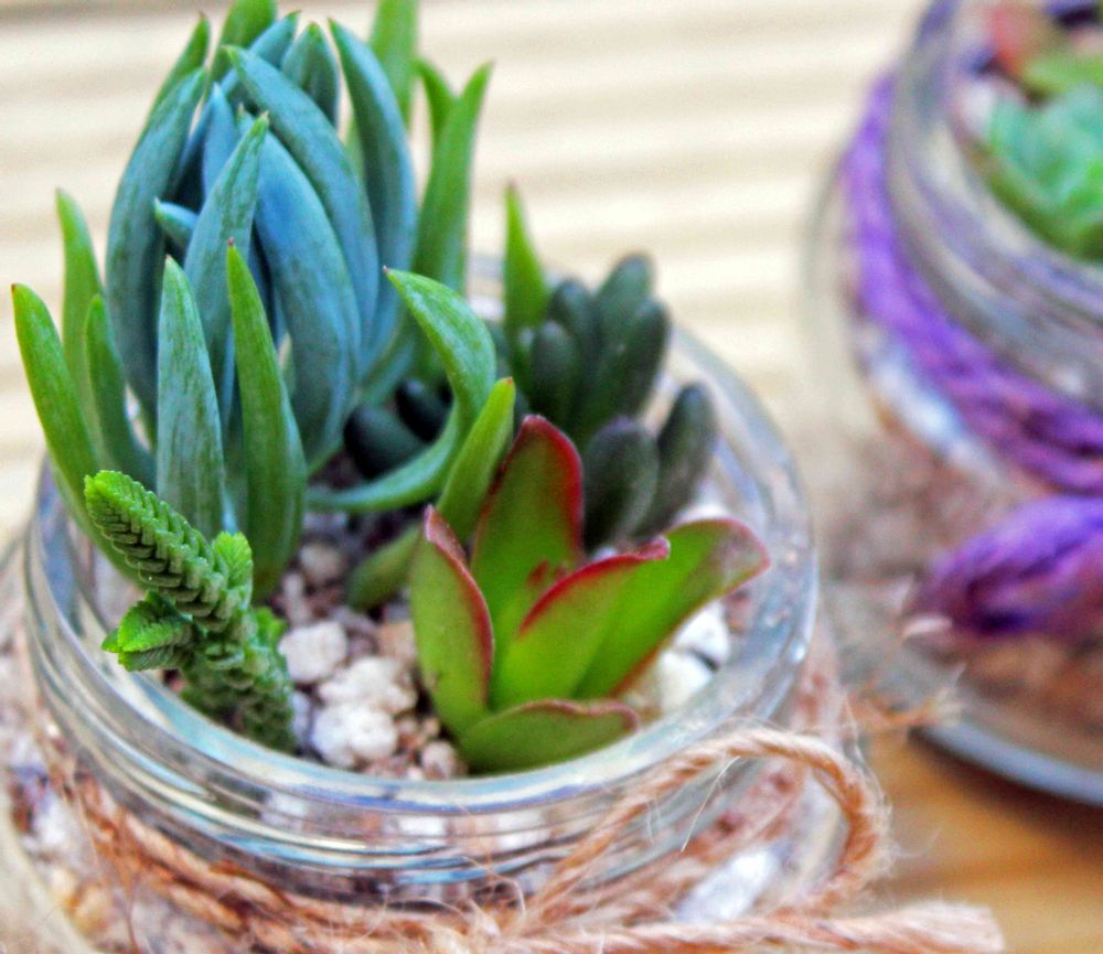 徒長してきた寄せ植えを整え直すためにカットした子をベビーフードの瓶にいれて、ちっちゃな寄せ植えつくりました!