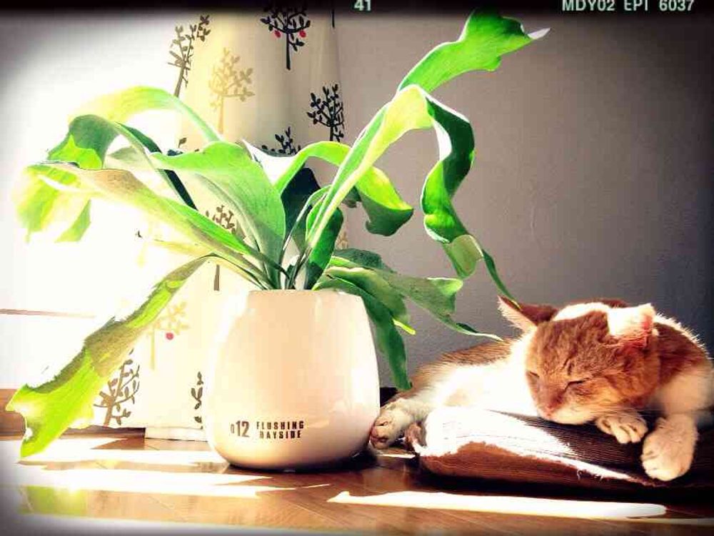 窓辺,コウモリラン・ビカクシダ,愛猫の投稿画像