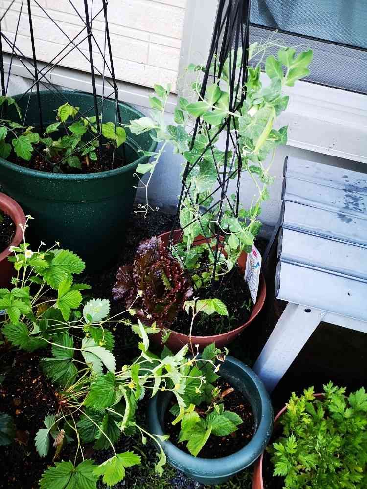 毎日保育園から帰宅して、スナップエンドウとワイルドストロベリーの取れそうな実を取って、嬉しそうに両手に持ってお部屋にはいる息子です。かわいいなぁ。