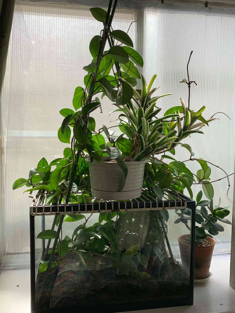 サクラランは、20年の間この窓辺に、ハイドロカルチャーの入った水槽で水耕栽培で育ててます。