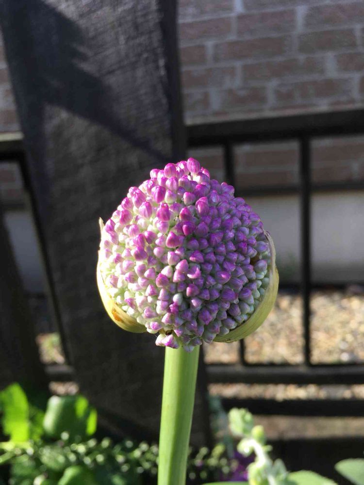 アリウムの蕾は桃が割れたようになり、どんどん大きくなってきました🤗