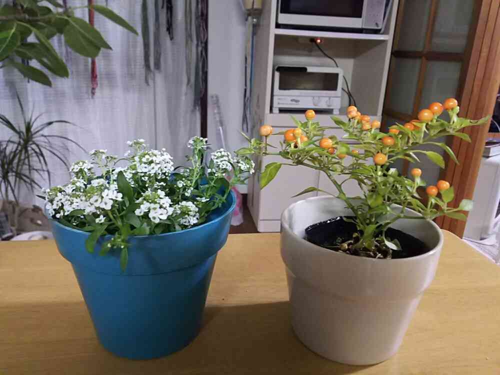 おつとめ品のトウガラシ✨とアリッサム😌少し家の中で楽しんでから寄せ植えしよう☺✨