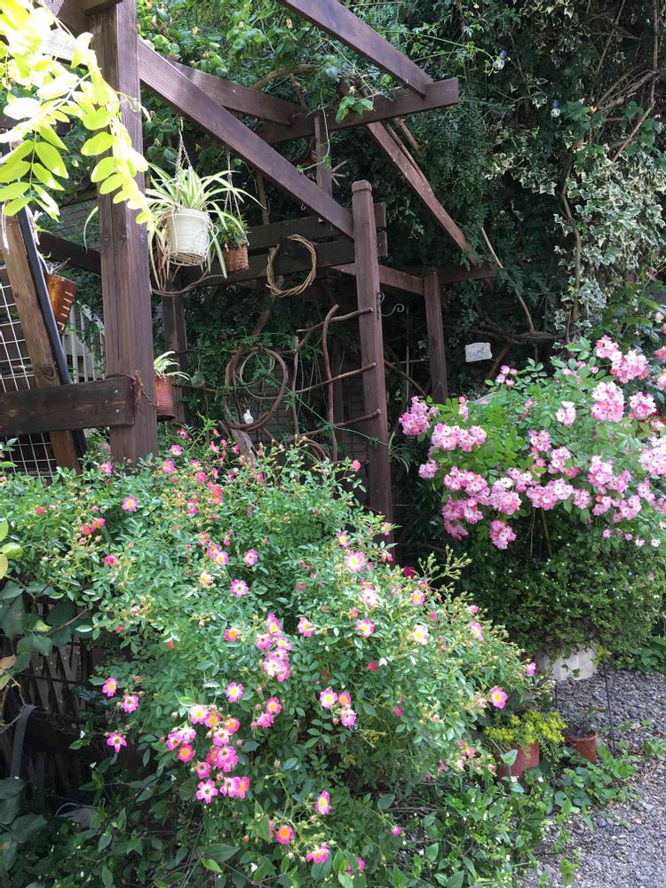 さん 今晩は パーゴラは、ムスコ君のオリジナルです 作って5年になります その他は私が作りました