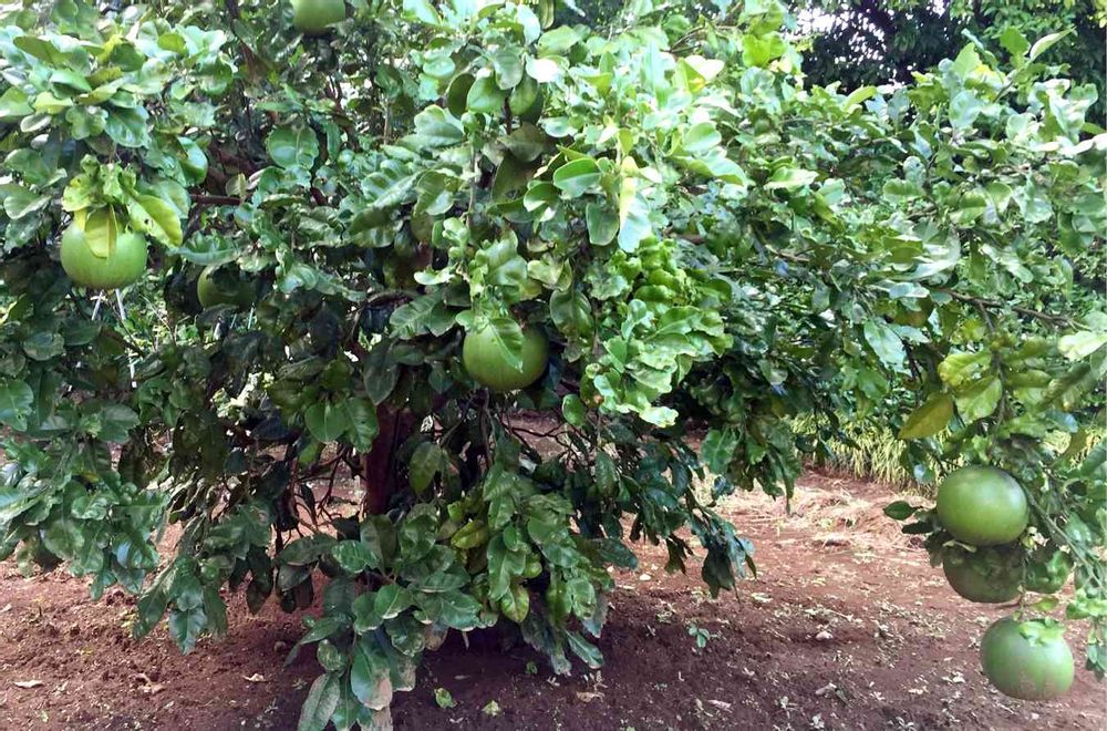 ザボンの仲間らしく、直径20以上の大玉で果汁は少なめでサクサクした食感だそぅ(。・ω・)ゞデシ!