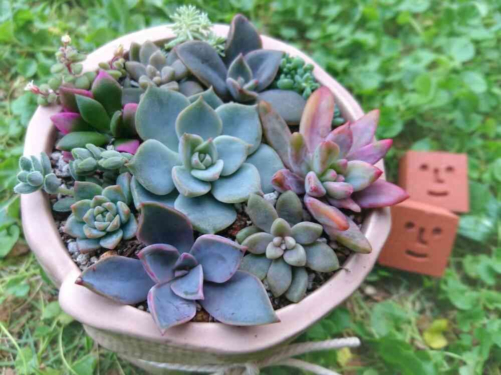 可愛い多肉ちゃん達だね(´͈ ૢᐜ `͈ૢ)右の笑顔のブロックも可愛い☺︎