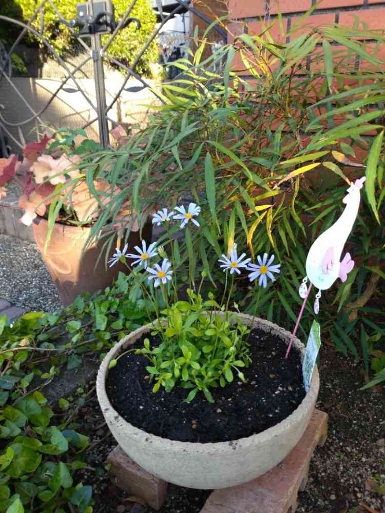 ブルーデージーをふた株購入。門扉をはさんで一株づつ置きました。