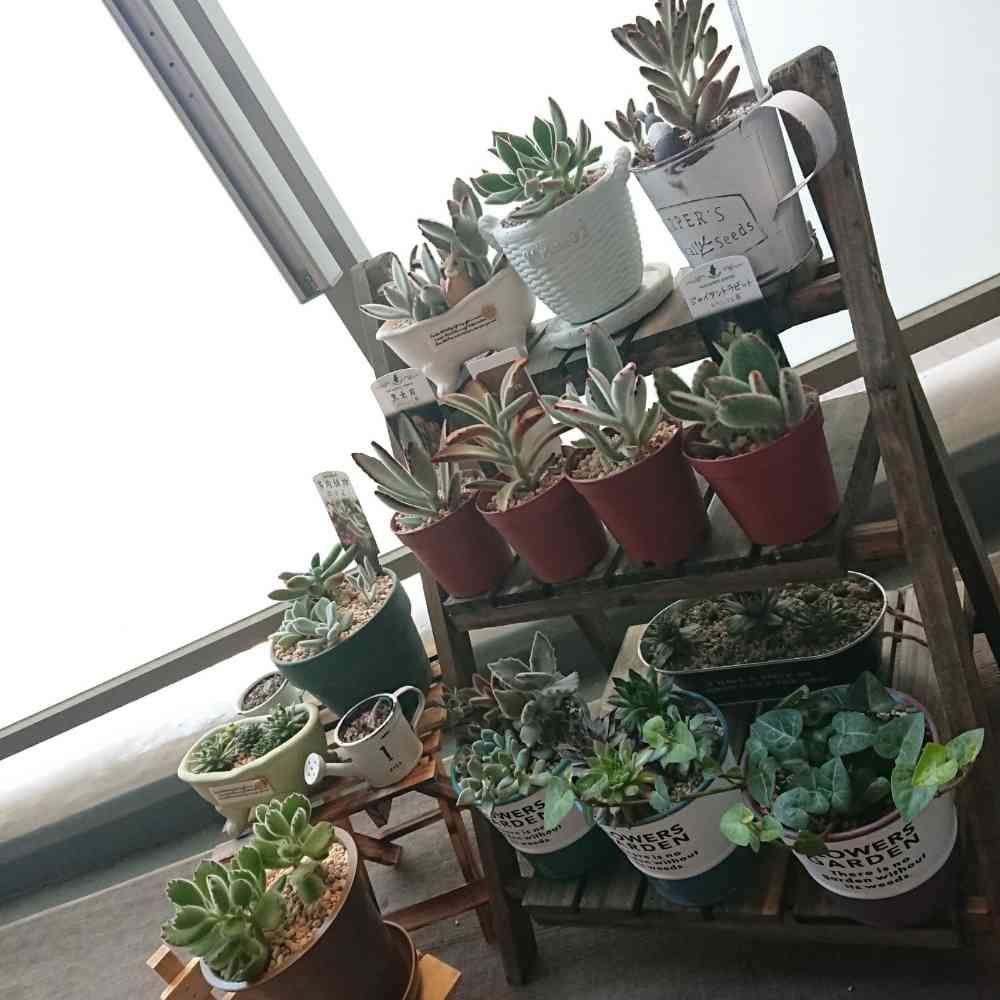 多肉植物とゼラニウム、アイビーをメインにあれやこれやと増やしすぎてバルコニーの足の踏み場がない人。バルコニーを広くする方法、教えてほしいです