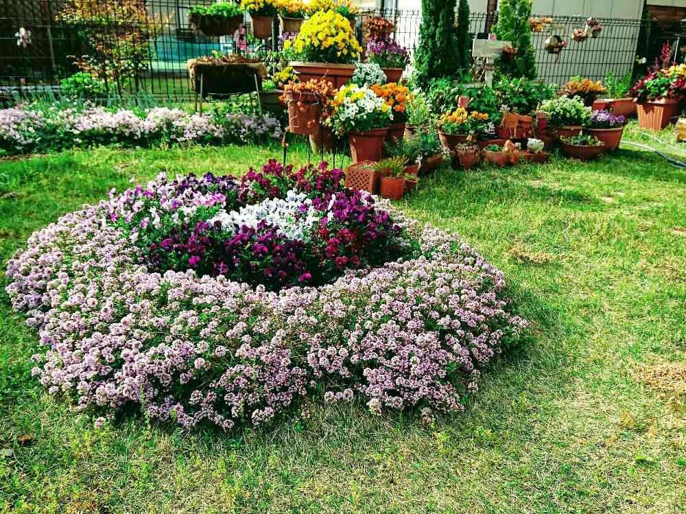 芝桜、ルピナス、イベリス、クレマチス、スノーボール、オダマキ、スズラン、ピオラ、パンジー、バラ、タイム。