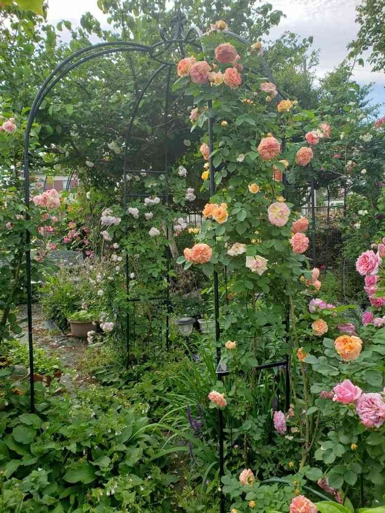 通路が結構広いので、薔薇だけでなく色んな植物を複数植えてあります🏵️🌿🌼🌿クレマチスも薔薇と共存しているので、庭全体が寄せ植えしている感じにしてるんですよ🤗