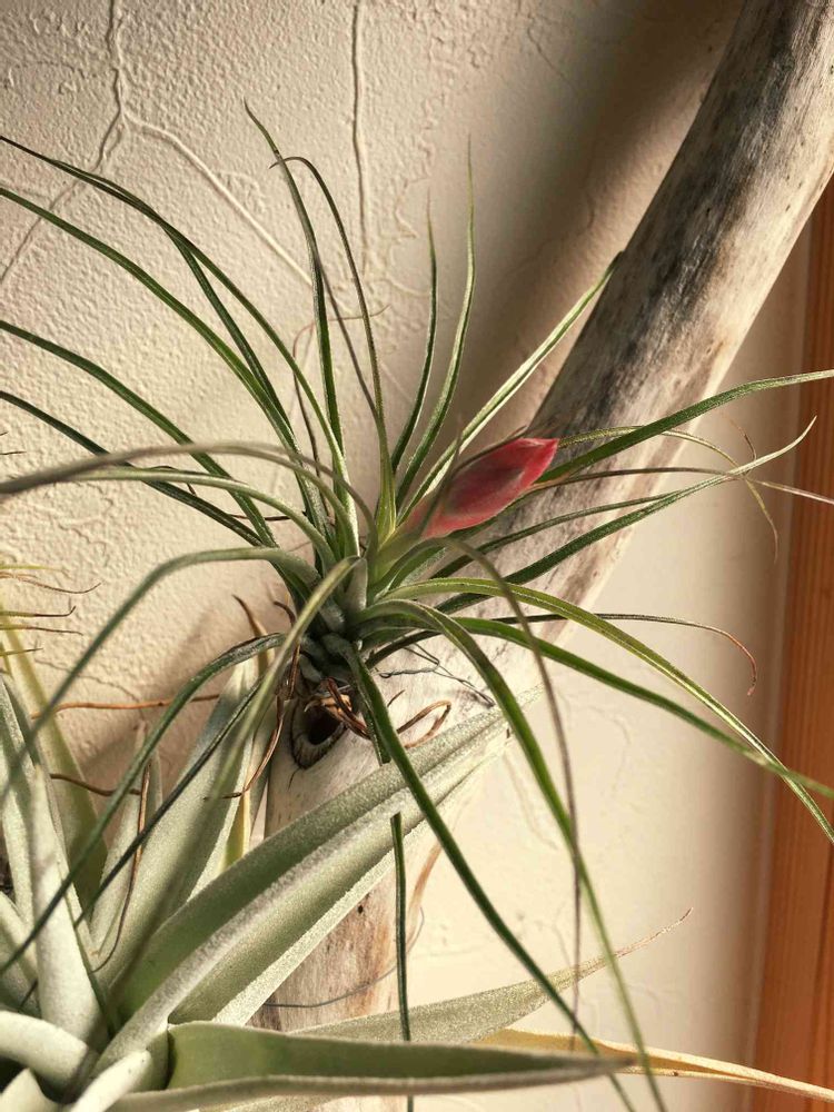 カッコよく葉を広げたチランジアに良い色のツボミ、元気そうですねー。