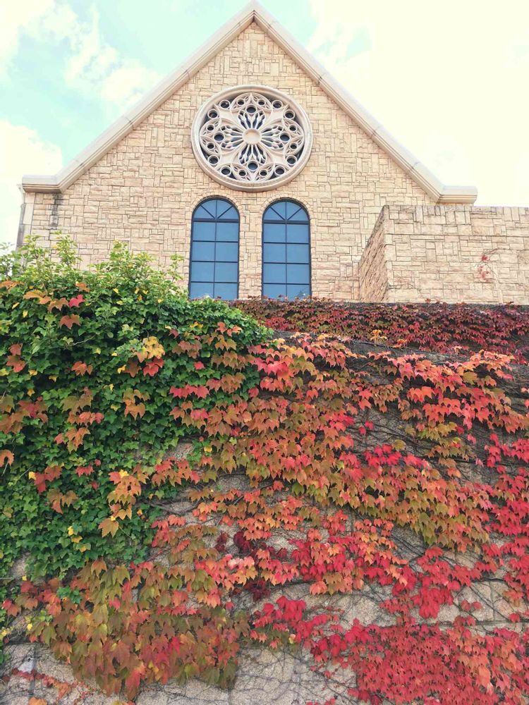 病院までの途中にあるコンビニのお隣りにある結婚式場の壁の蔦の紅葉、見つけました❗️🍁✨