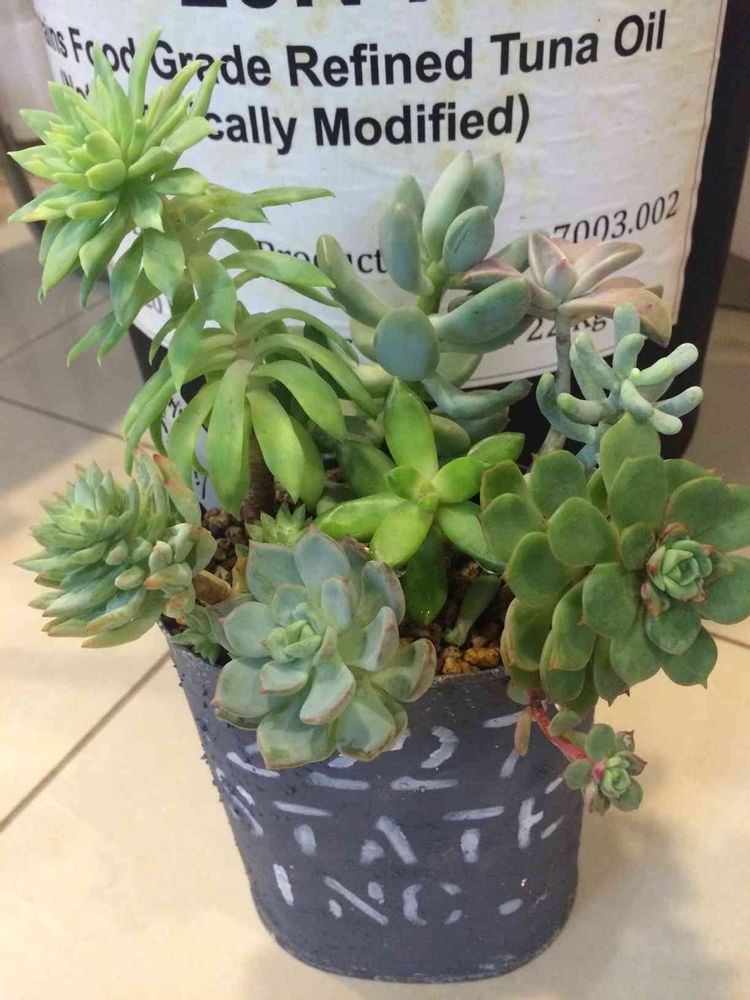 なるかな?なるかな?本気でぶっこみリメ缶……ファンファーレとかchii-さんの寄せ植えのとは別物に見えるよー!伸びて伸びて……切っちゃうか迷ってるけど……笑