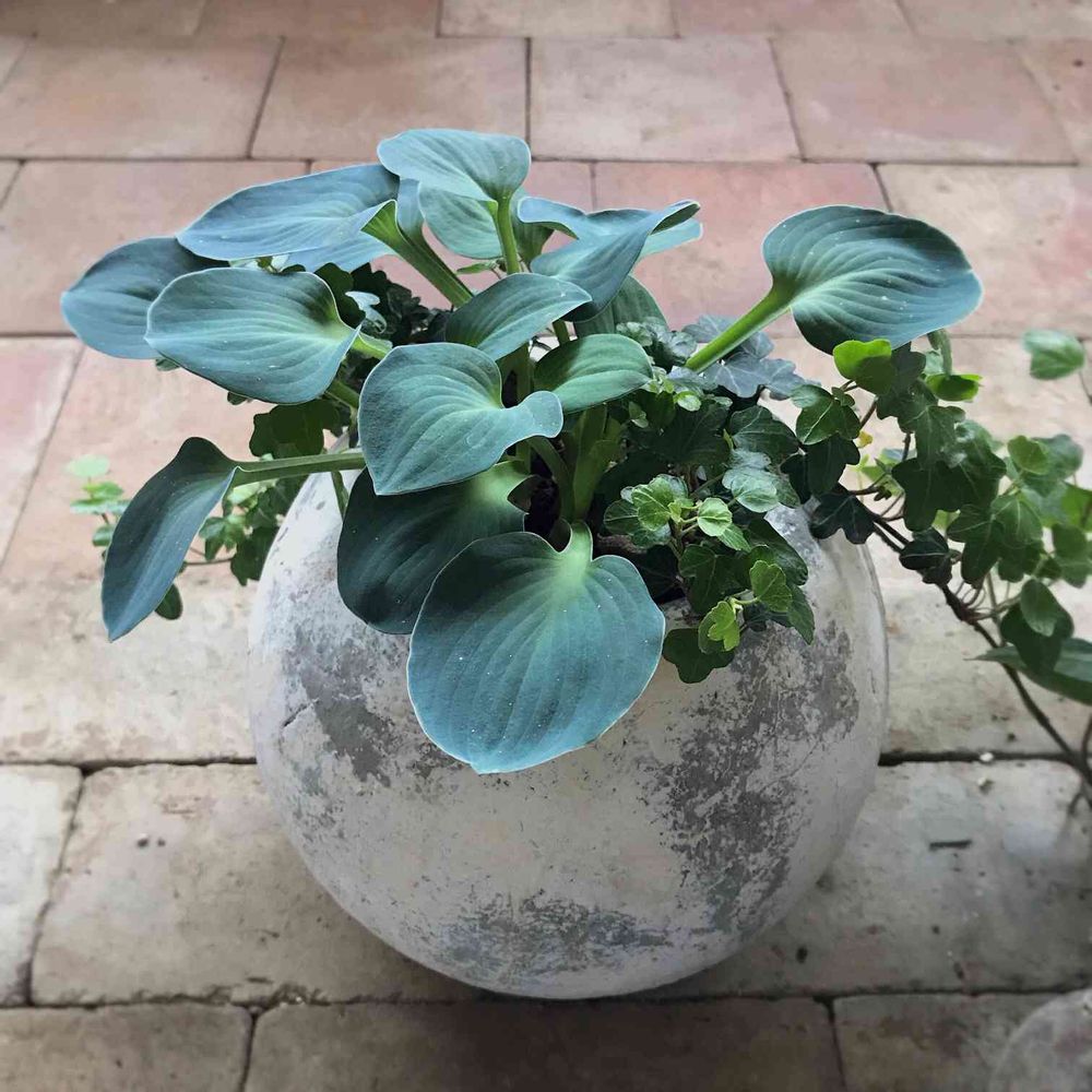 本当にネズミ🐭のお耳のように丸くて小さなホスタなんですよ💙鉢とのバランスもいい感じです♫