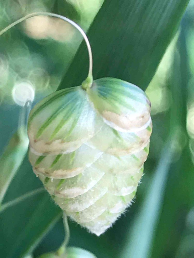 この緑色の子は薄いヒダが重なっているだけですが、茶色の子はカサカサして一枚ずつ