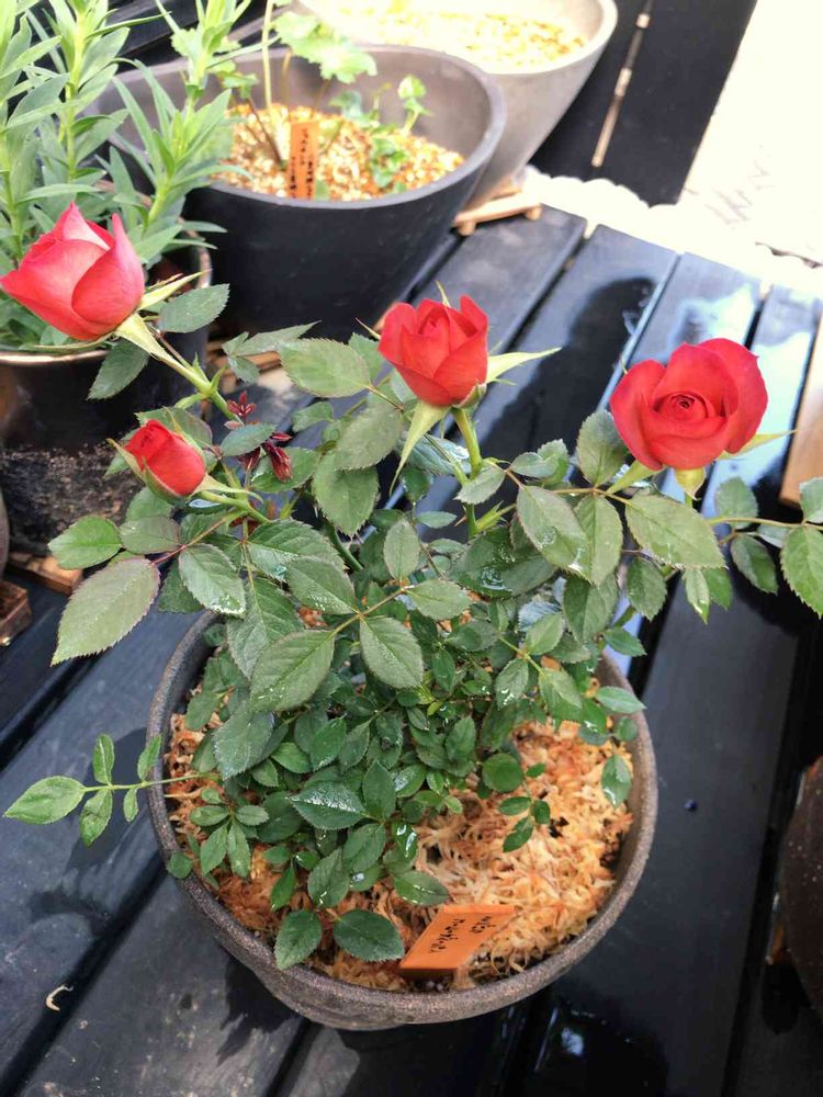 くすんだ赤色が好みで、かつミニバラなのでそこまで大きくならず弊狭小ベランダにも収まりそう…(?)