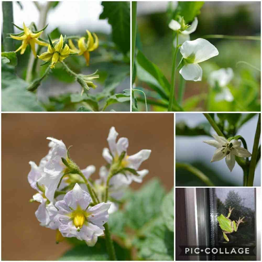 今日は家庭菜園で育てている野菜の花と、可愛いお客様です。