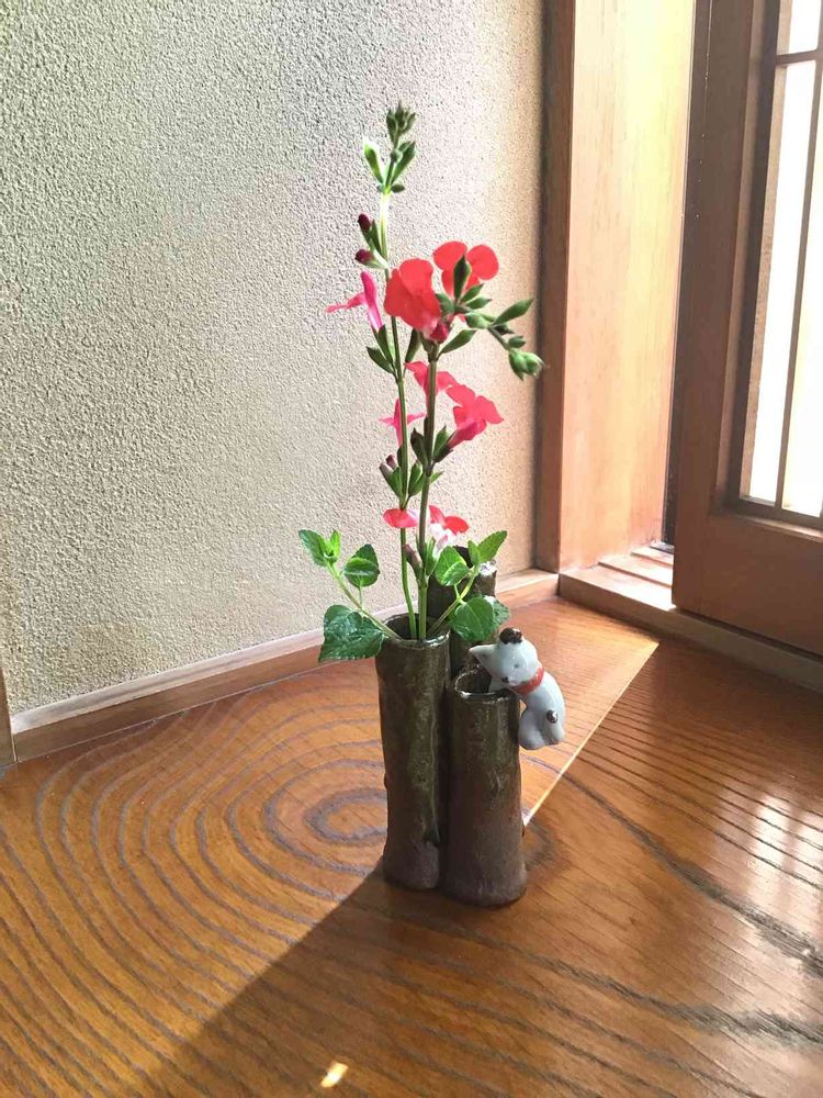 朝、庭に 咲いてたチェリーセージを 入れてみました。
