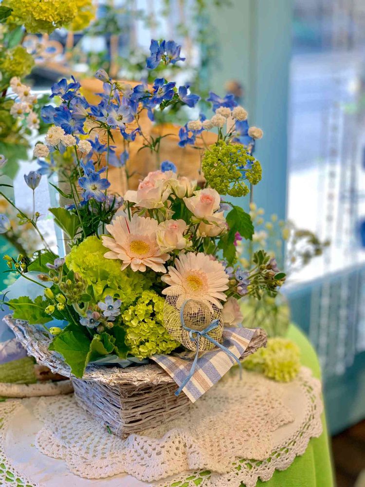 さん♪こんにちは😊毎月通っているフラワーアレンジメントのお教室で作りました!先生のセンスがいいので、毎月癒されています🎶