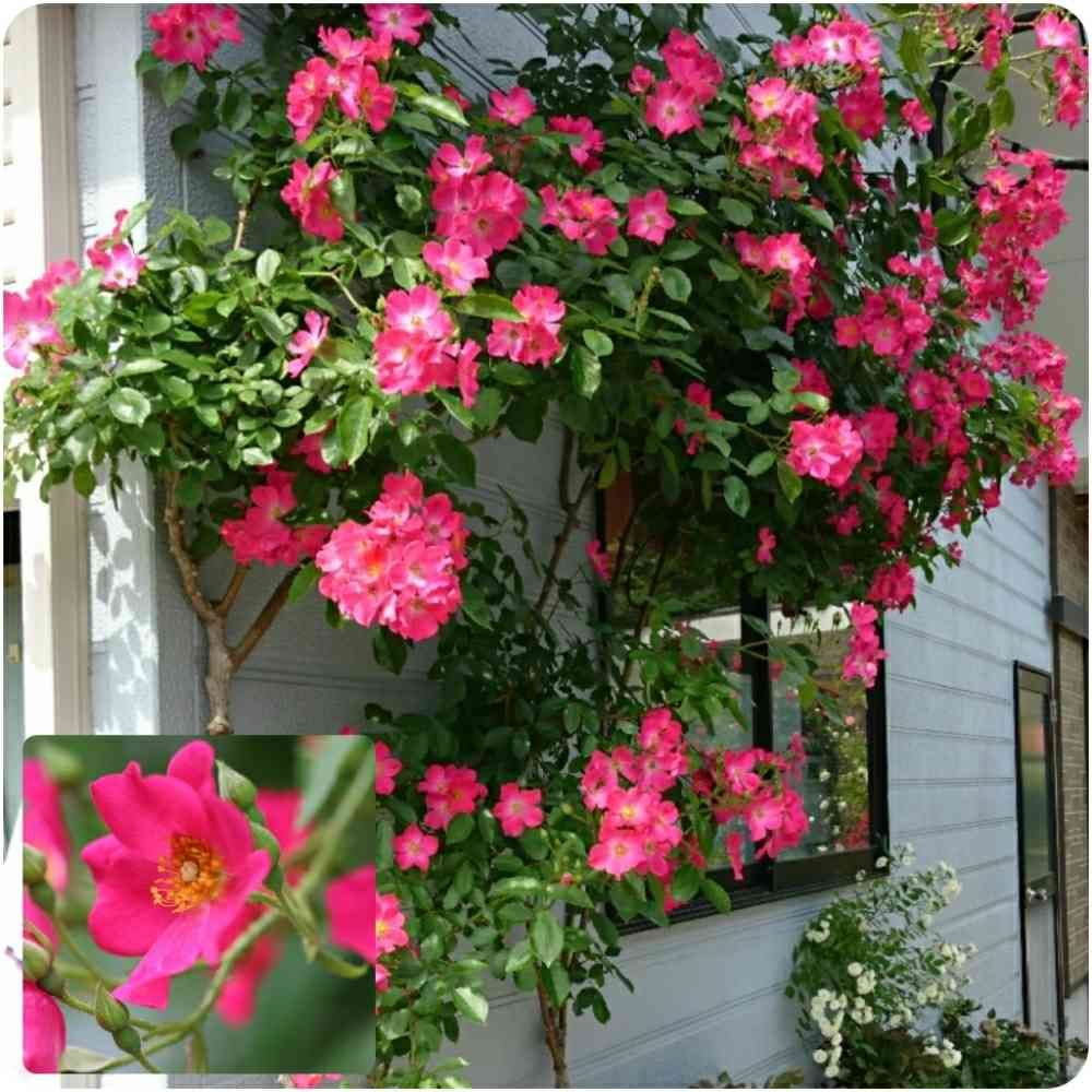 この薔薇さん見切り品でフルリールさんにお迎えしてもらって喜んでますね〜❣️白が赤ピンクなんてまたまた驚き!壁に映えて綺麗ですね💕