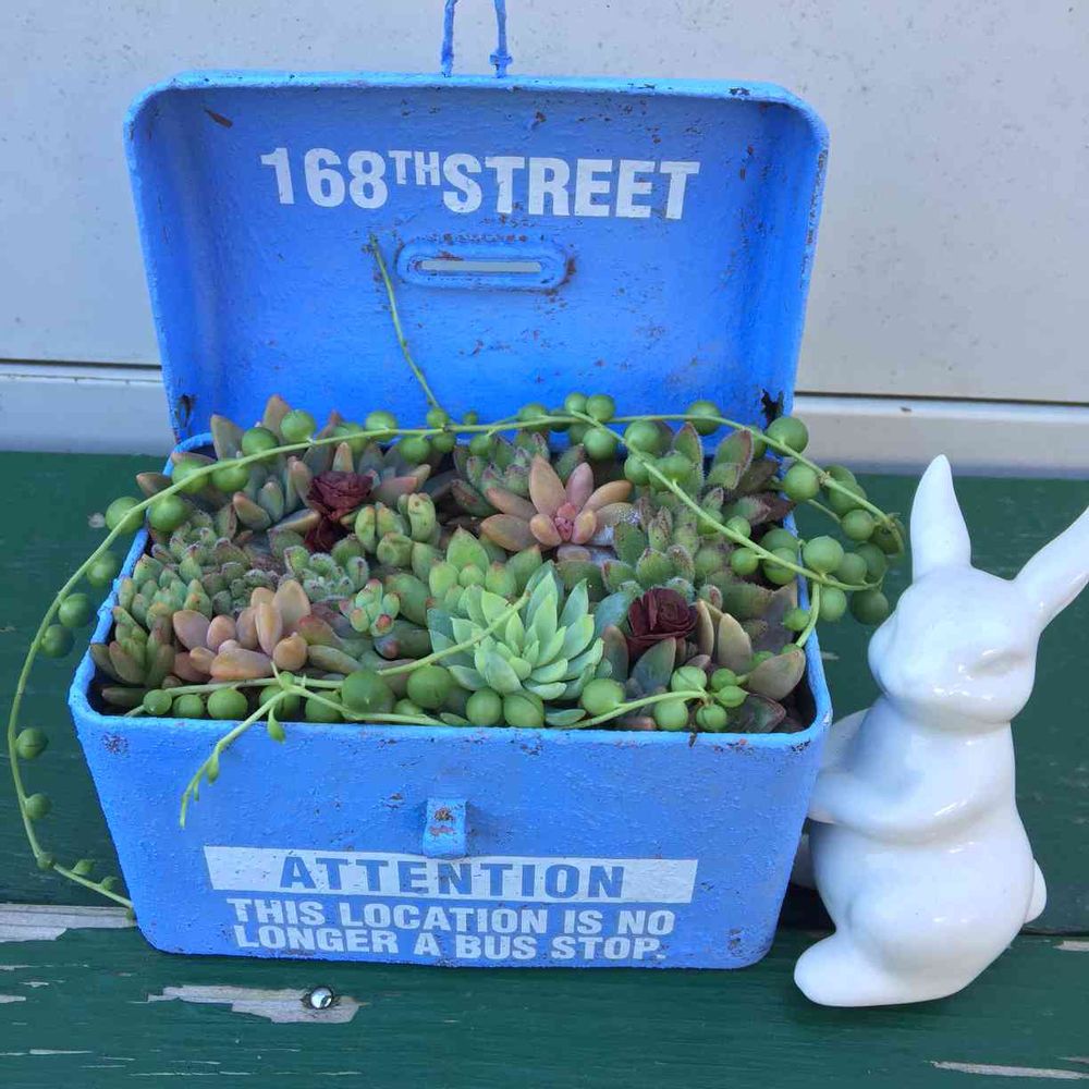 綺麗な青に多肉がすごく映えますね〜💕私の大好きな🐰さんも一緒でお気に入りの寄せ植え〜😄💓💓💓