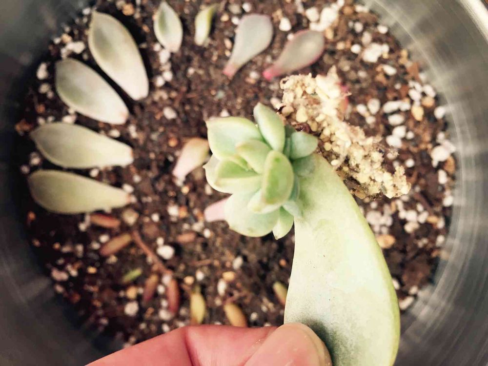 根っこ出てる?とりあえず養殖場に置いといて、根張りしてきたら株本にちょろっとお水あげてでいいと思う。そのうち親葉が枯れてくるから、引っ張れば取れるよ。でもごくたま~に親葉がいつまでもピンピンしてる子もいるけどね(取れない)