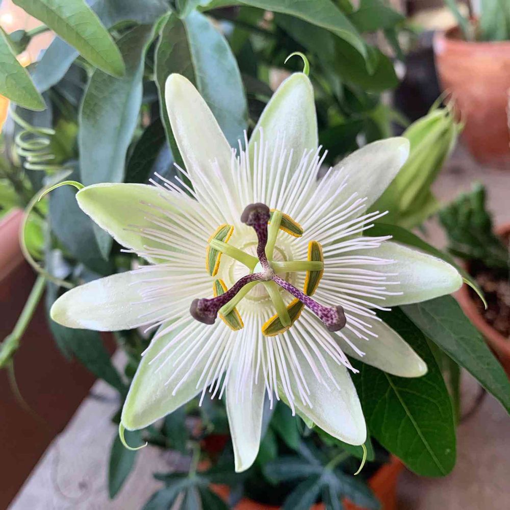 これから蕾をつけるのを待つのも楽しみですね⏰ トケイソウのこっち見てるような存在感がすごいです☺︎