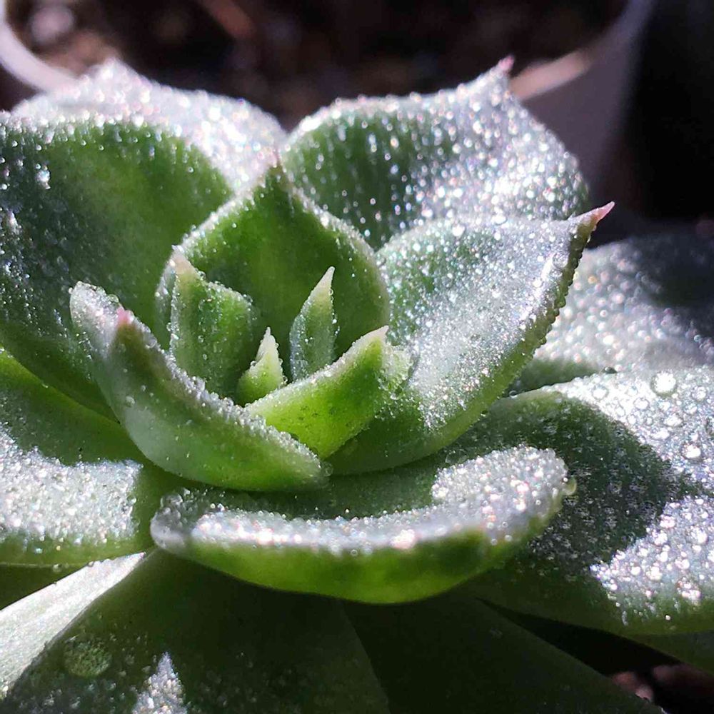 今朝、霧吹きで葉水をあげたら砂糖菓子みたいにキラキラしてとっても綺麗✨✨✨