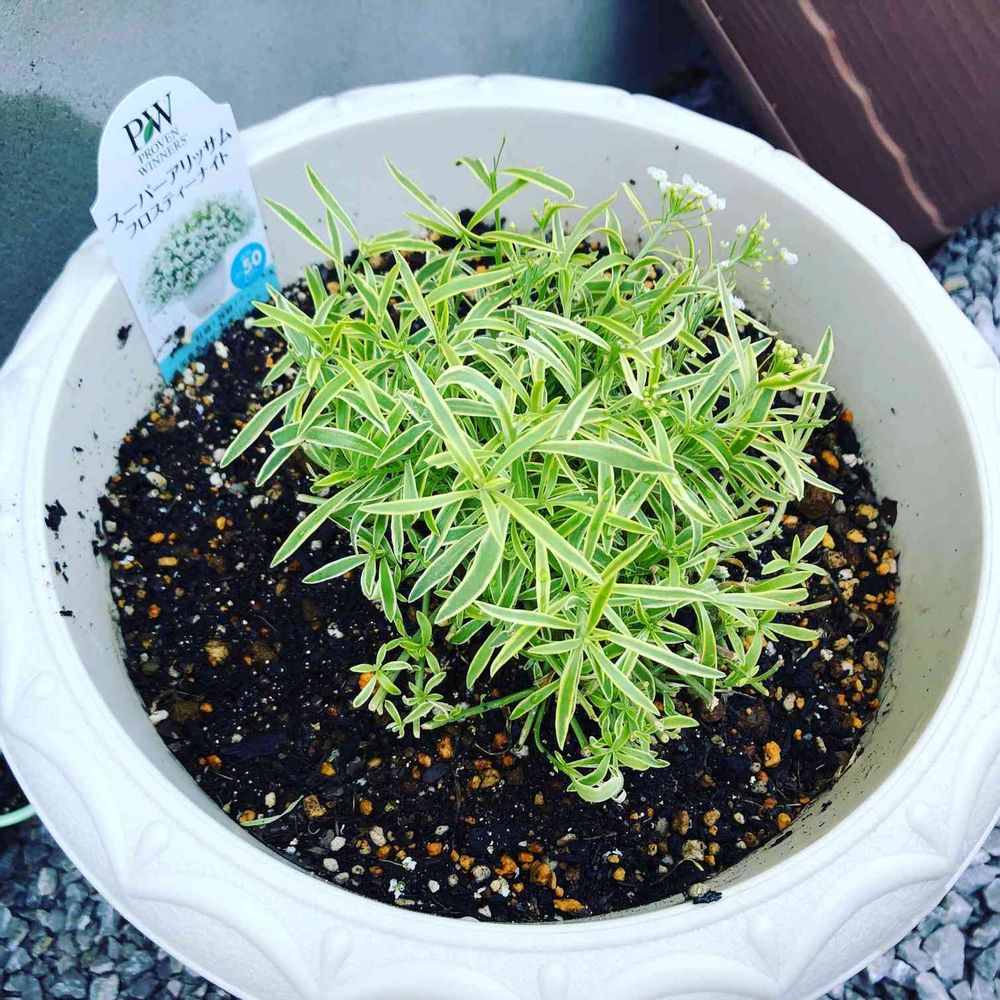 おはようございます☀️最近どーも葉の色が薄くて、数日前に思い切って刈り込んだスーパーアリッサム。そのまま東側に移動して様子を見ていたら葉の色が復活して、少し元気になったみたい。やはり我が家の直射日光に耐えられなかったんだね…南無