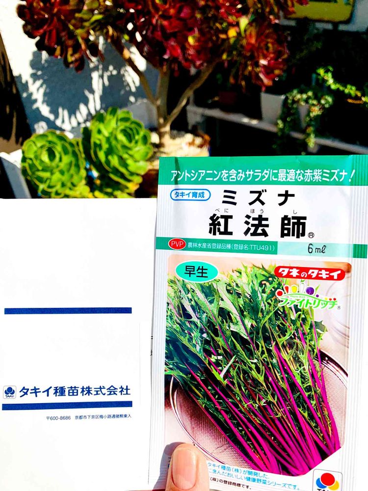 ミニトマトぷるるんに続いて、ミズナの種当選しました( ̄∇ ̄)