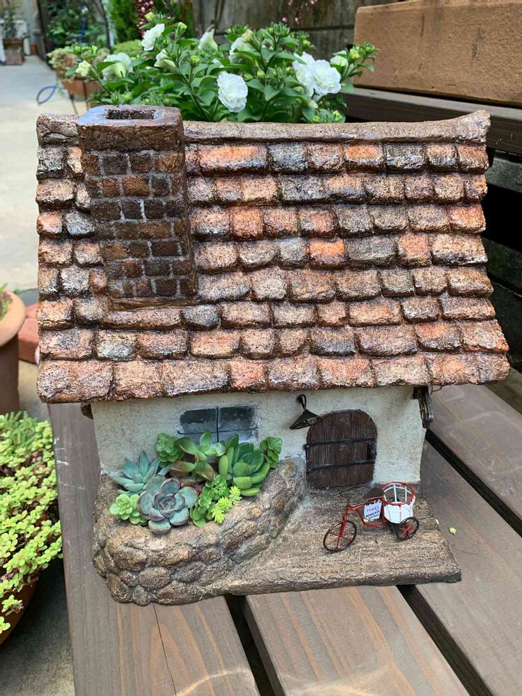 寄せ植え,多肉植物,モルタル造形のお家の投稿画像
