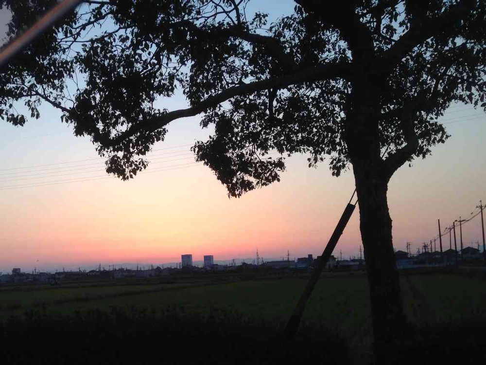 夕焼けと木