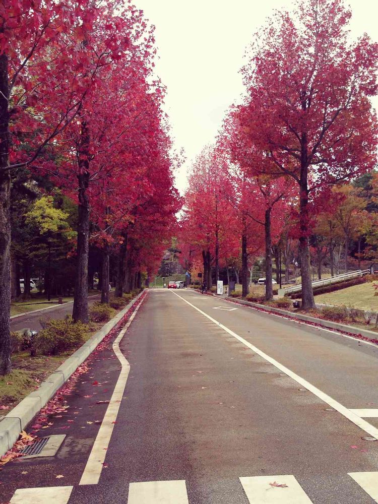 仕事帰りのアメリカ楓通りが赤く色付いてきてました。^ ^