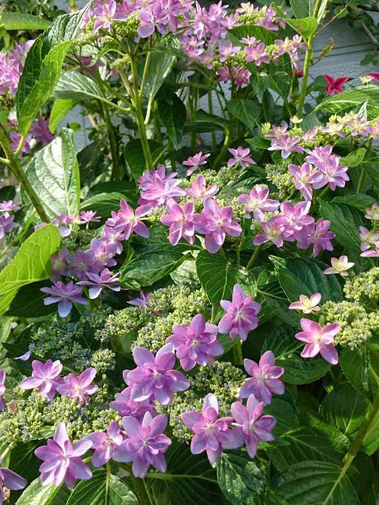 どのアジサイもそうですが 売られている時と違い 本来の姿の大株になり 花自体は小さくなるのが残念です(⑉・̆-・̆⑉)੭