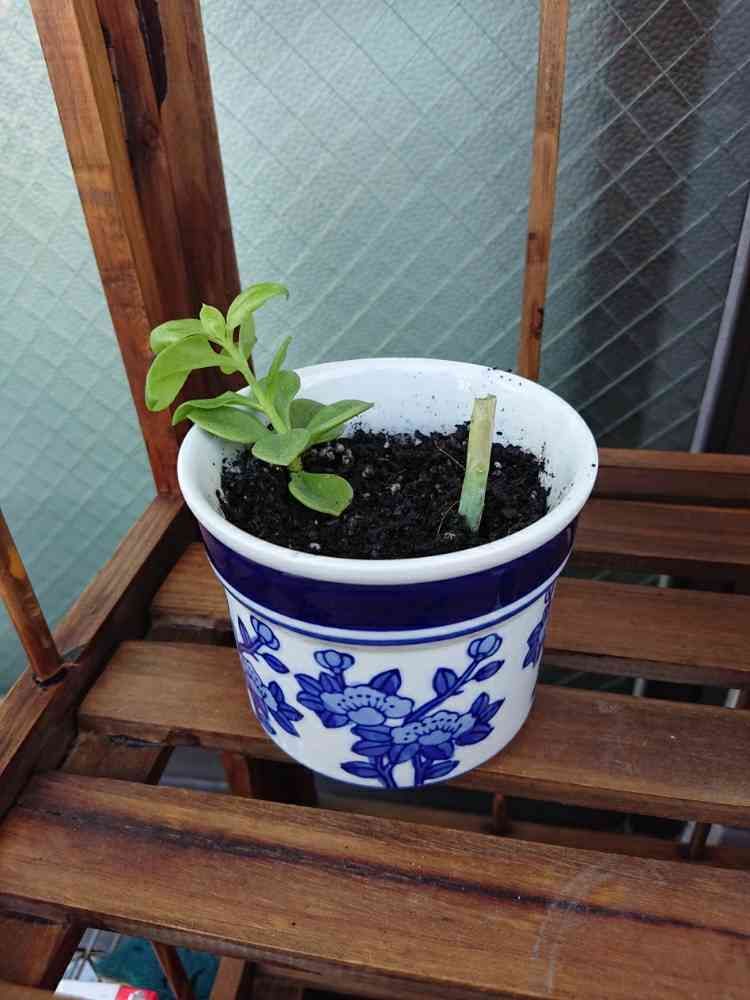 ベランダに出して、ぐらぐらするほど間延びしていたので、チョン切ってやりました‼️