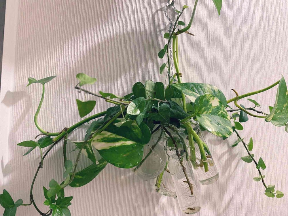 トイレに水挿しにしておいたポトス、アイビー発根してますね〜♬