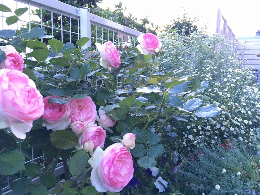 ジャックポットが開花してピェールとコラボ出来ました。今日のピェールは中心のピンクが強く華やかな気がします。ジャックポットも一ヶ月で50センチくらい伸びたような。去年は一株、夏を越せずダメにしてしまい、今年はどうしたらいいか考え中です。