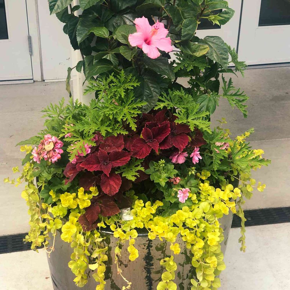 寄せ植えにハイビスカスを使おうと思ったことはないけれど参考までに🌺アメリカの邸宅ガーデン訪問にて。