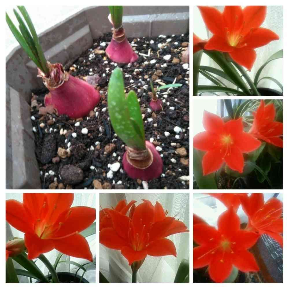 アマリリスのようですが球根の色がちがいます。