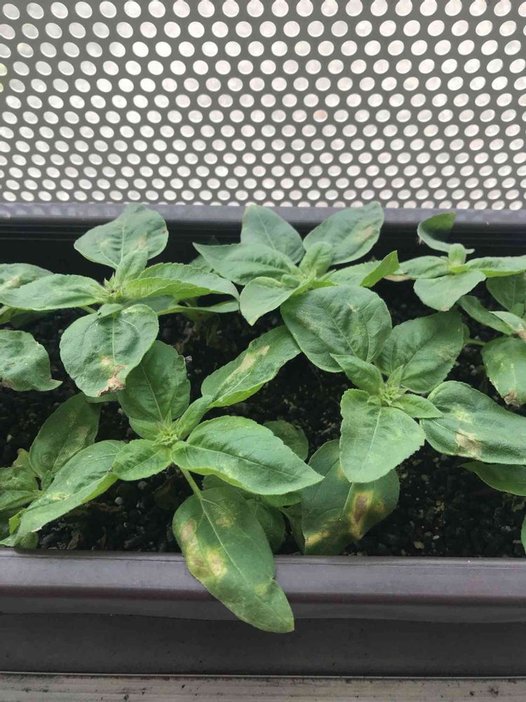 ミニ向日葵🌻 種から育てているのですが、元気がなく葉っぱが茶色くなってしまいます。