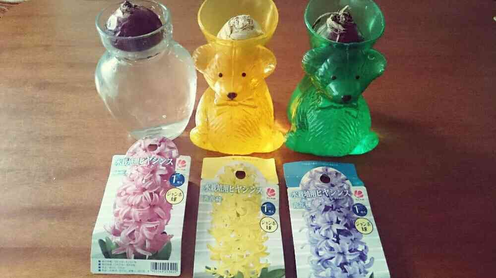 ヒヤシンスの水耕栽培、始めましたぁ(*^^*)