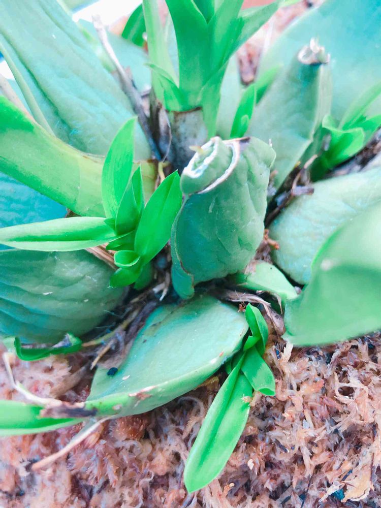 バルブの付け根のあちこちに新しい芽⁈、葉が沢山♬