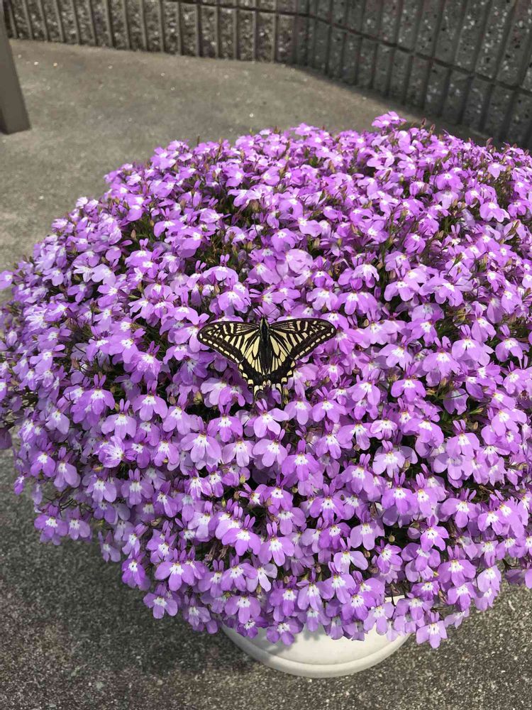 アズーロコンパクトが満開で、蝶々も喜んでくれているみたいです😊