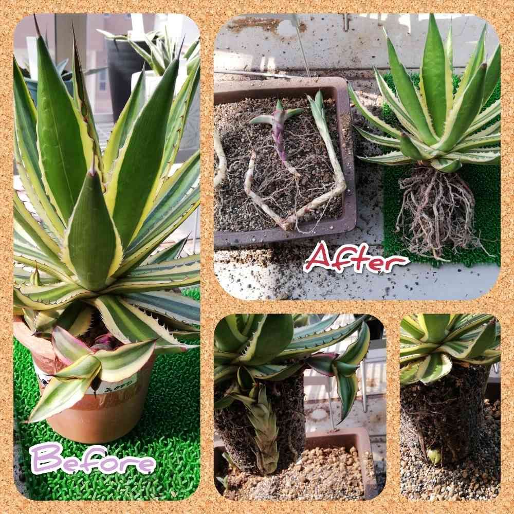 鉢底から根っ子が出てきてたし、子株も2本伸びてきていたので、鉢から出してみることに🎵